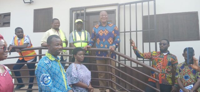 The Mayor of Kumasi, Hon Samuel Pyne on Wednesday morning handed over a 14 seater institutional toilet facility funded by the World Bank and constructed by Ezra Construction Limited to school authorities at the J.A Kufuor Senior High School, Sokoban.
