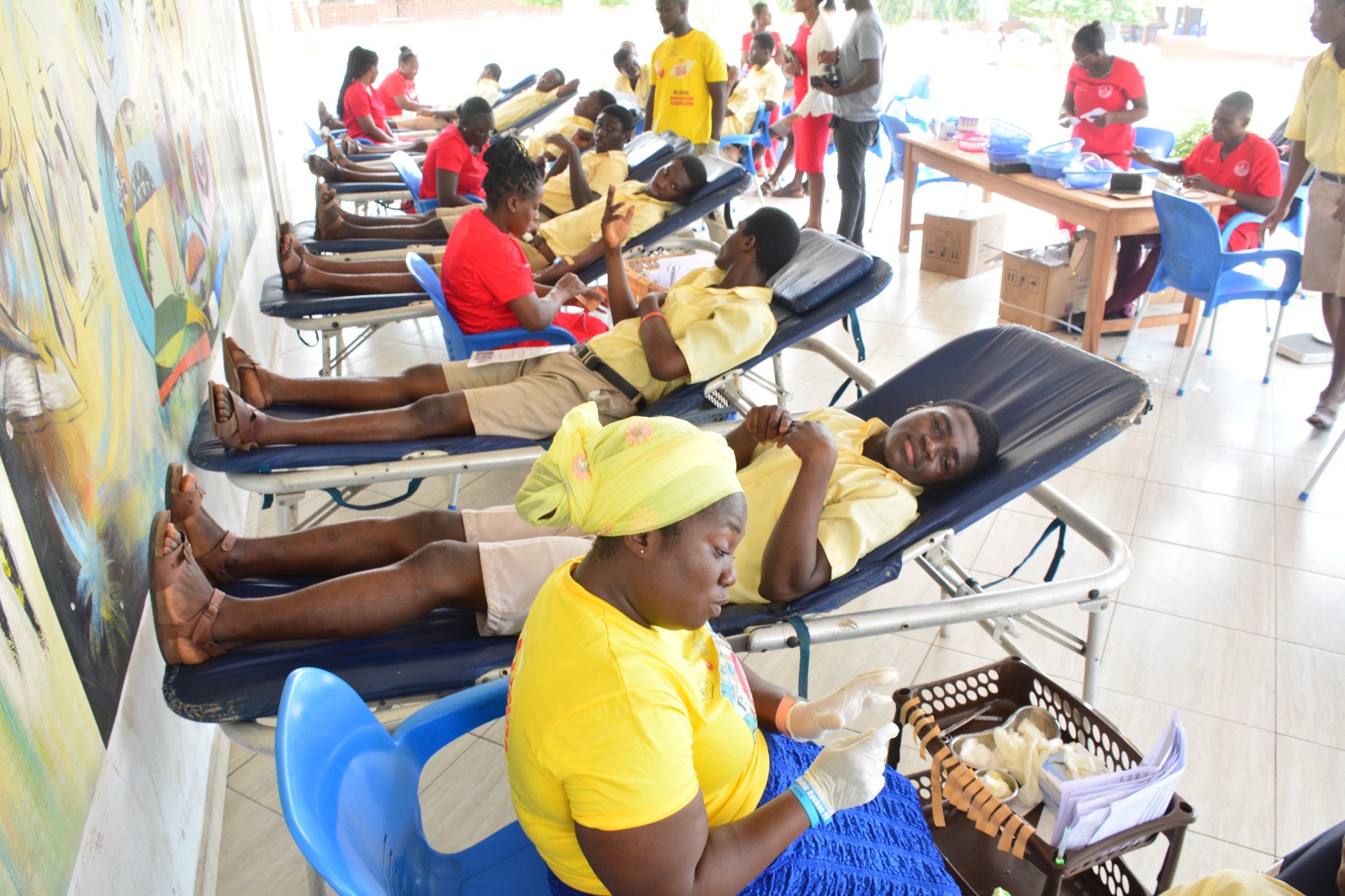 Students of Accra Academy donating blood during MTN Save a Life campaign